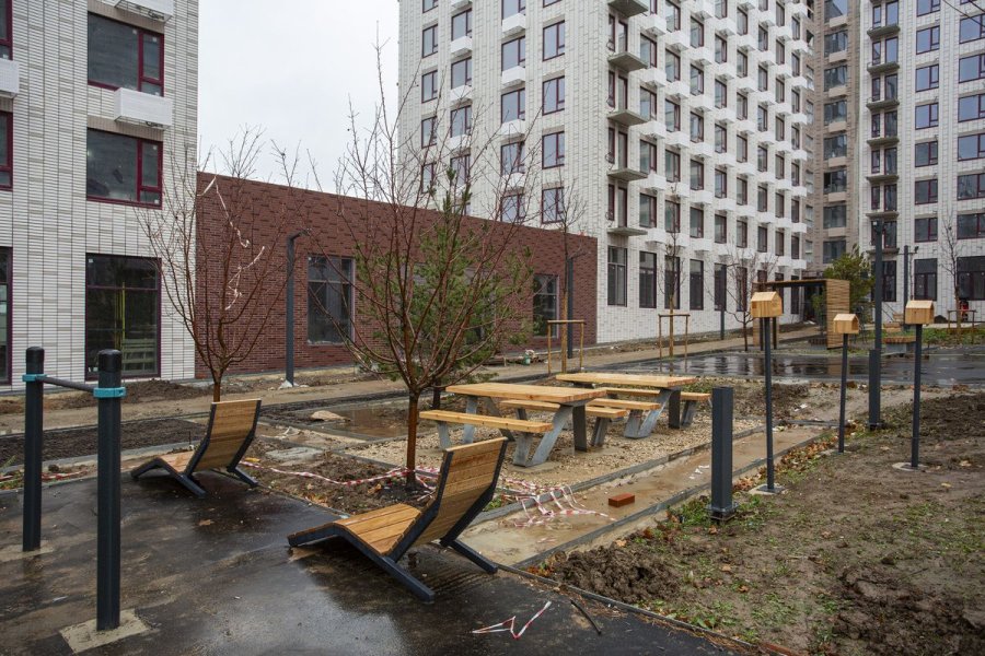 Обустроенные дворы позволят заняться спортом, погулять с детьми и отдохнуть от суеты. Не сложно будет сходить в Валуевский лесопарк, который находится от ЖК «Середневский лес» в нескольких минутах ходьбы. Также рядом с жилмассивом расположены дачные участки и пара деревень: Голенищево и Середнево. Однако инфраструктура в них слабо развита, поэтому для жильцов нового комплекса построят здание школы и детсада. Из Середнево до станции метро «Тропарево» ходит рейсовый автобус.